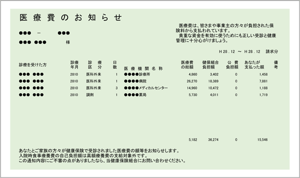 そこで、健康保険組合では、健康保険組合制度をより深くご理解いただくため、「医療費のお知らせ」を作成し、みなさんが受診された医療費をお知らせしています。